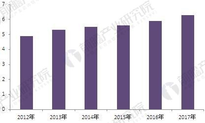 图表3:2012-2017年我国全社会用电量(单位:万亿千瓦时)