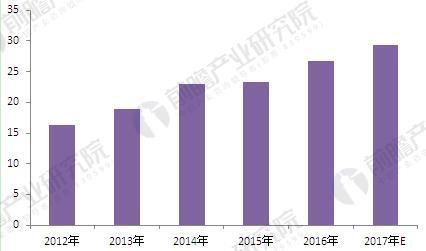 图表4:2012-2017年电力行业高压变频器市场需求(单位:亿元)
